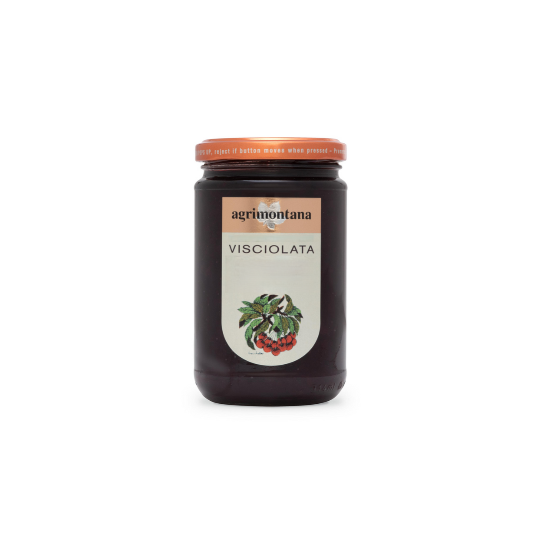 La visciola è una varietà di ciliegie dal gusto simile alle amarene. La preparazione di visciole Agrimontana contiene 107 grammi di frutta per 100 grammi di prodotto finito. Freschezza e leggera acidità sono le sue caratteristiche. Ottima sul pane e nella crostata.